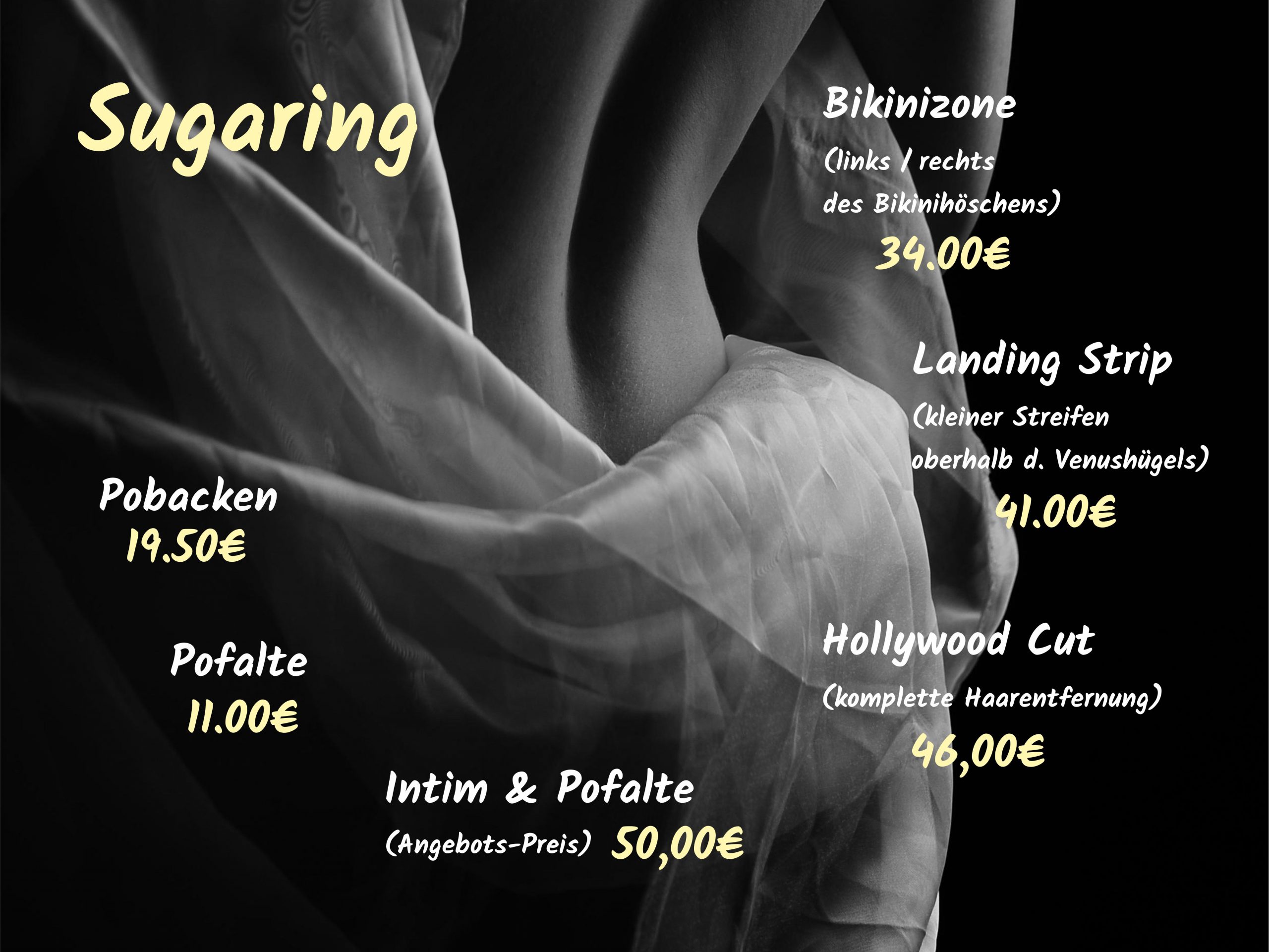 Bitte zum Sugaring in weiter bequemer Kleidung kommen, enganliegende Kleidung reizt die Haut nur da die Haarentfernung mit der Wurzel erfolgt.
